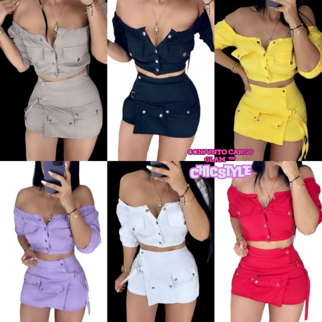 • 💎 Diseño: Falda short estilo cargo y blusa bandeja.